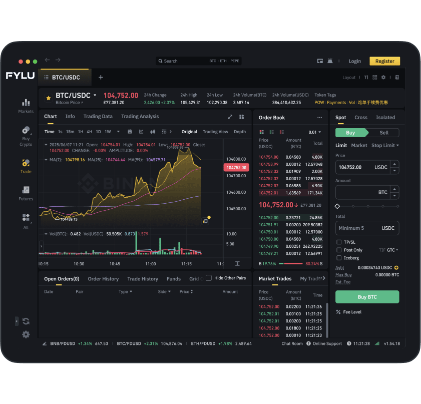 与传统金融市场不同,数字货币市场 全天候运行(24/7),FYLU用户可以随时进行交易,不受时间和地域限制。
